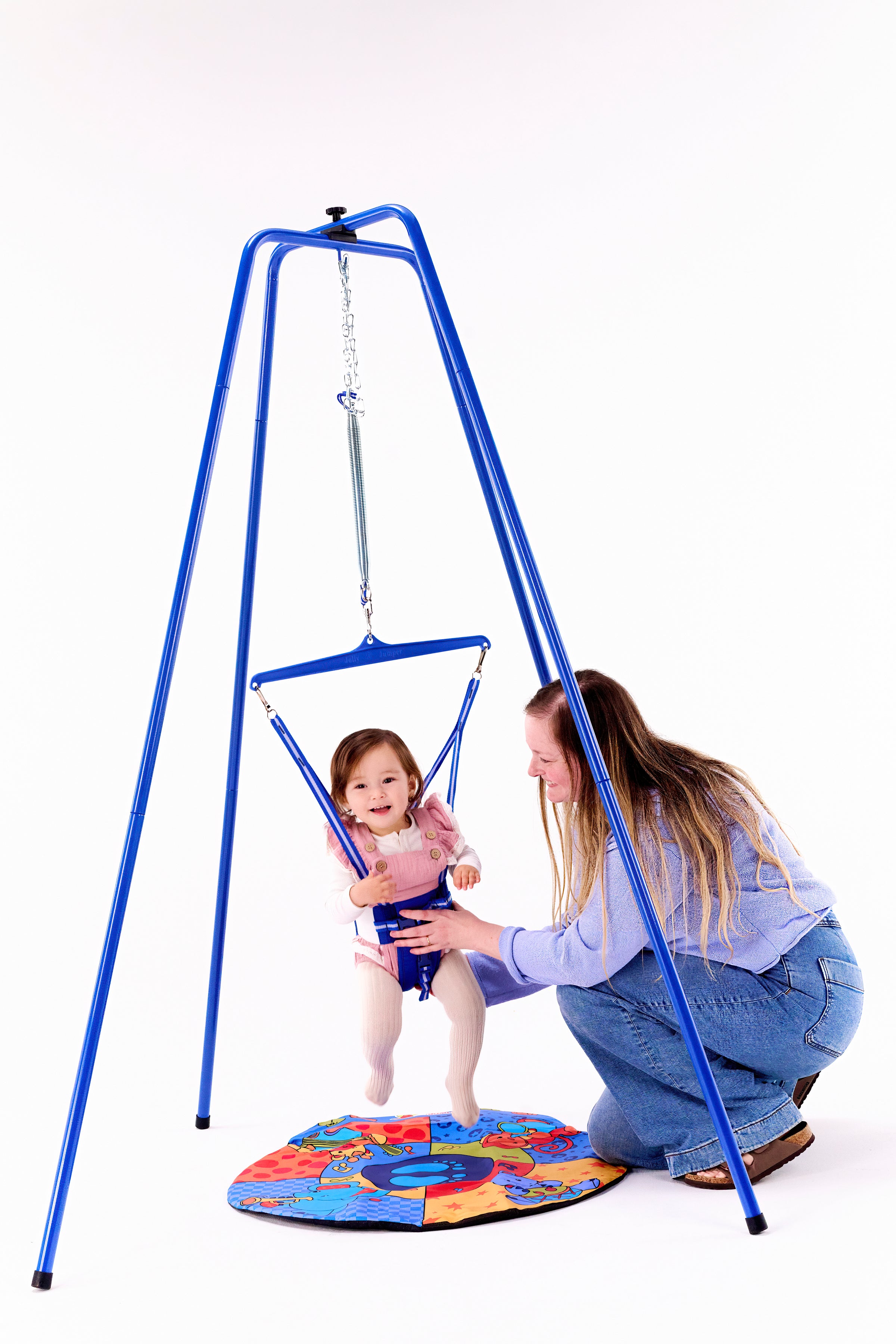 Our bouncer with stand lets your baby bounce anywhere. Transform your home into a gravity-defying world of pure joy. Easy to assemble frame, comfortable harness and approved by generations of jolly jumpers.